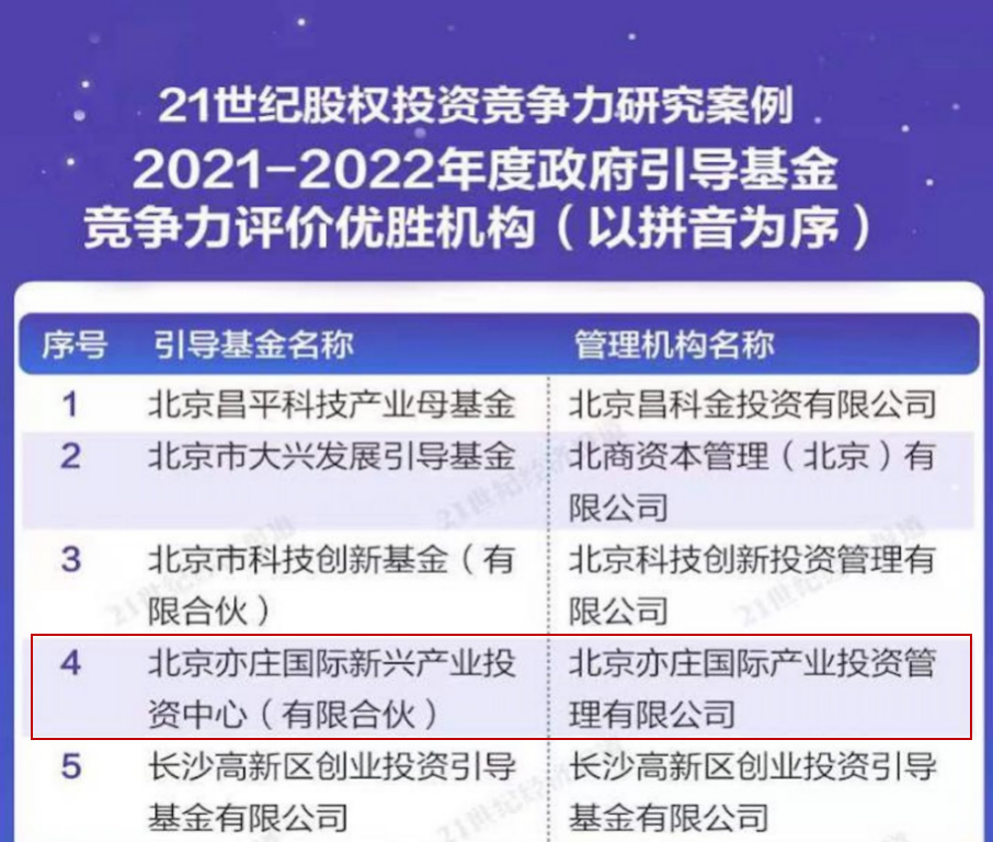 7月1日,21世紀經(jīng)濟報道(dào)“21世紀股權投資競争力研究案例2021-2022年度政府引導基金競争力評價優勝機構榜單”正式發(fā)布。榜單聚焦各地政府引導基金(不含國(guó)家級、省部級政府引導基金)在服務區域經(jīng)濟發(fā)展、推動産業調整升級、提升區域創新創業競争力等方面(miàn)的價值與貢獻,圍繞各政府引導基金的政策目标、财務效益和管理水平等方面(miàn)對(duì)管理機構進(jìn)行綜合評價。亦莊産投憑借其優異表現榮獲“2021-2022年度政府引導基金競争力評價優勝機構”。