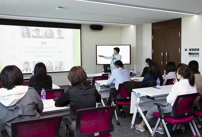 授課老師通過(guò)《探秘潛意識》、《培養自信的孩子》、《情緒舒壓》等課程,對(duì)自我了解自我認識、培養孩子健康的心理狀态、如何化解心理壓力等問題做了深入淺出的講述,并在授課中通過(guò)緩解心理壓力的遊戲和放松法等方式進(jìn)行互動,引導員工适時(shí)放松身心、合理宣洩,以最佳的精神狀态健康、高效、愉快的工作。