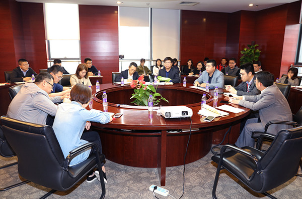 A delegation led by Wang Bo, a top official from Beijing E-Town International Financing Guarantee Co, visited Beijing SMEs Credits Re-guarantee Co on March 16.